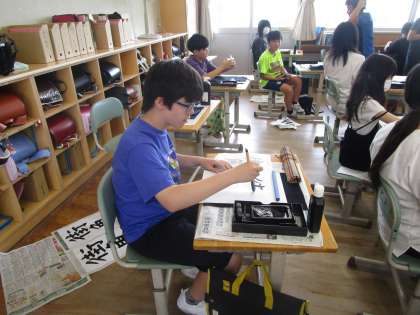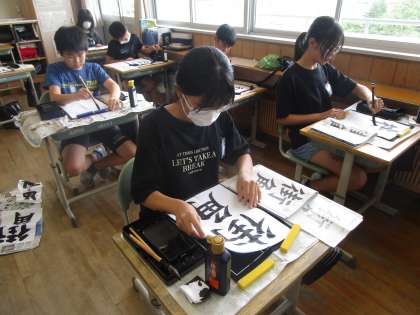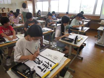 6年生 書写 公開日 2024/07/11 更新日 2024/07/11 6年生 「街角」を毛筆で書きました。「街」という文字を縦に3つに分け、それぞれの部分の大きさや高さに気を付けて書き、美しい文字を目指しました。