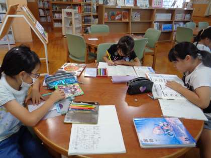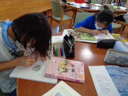 4年生 国語 公開日 2024/07/17 更新日 2024/07/17 4年生 国語科では、「本のポップをつくろう」の学習をしています。杉原小学校のみんなにぜひ読んでほしい本を決めて、その本を手に取ってもらえるようなポップを作っています。