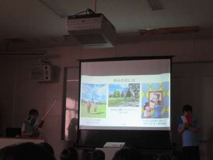 体験入学をしている2人から、フランスのことを教えてもらいました。有名な観光名所や学校生活など、知らないことがたくさんありました。国によって、仕組みや文化が違うことを、楽しみながら学ぶことができました。