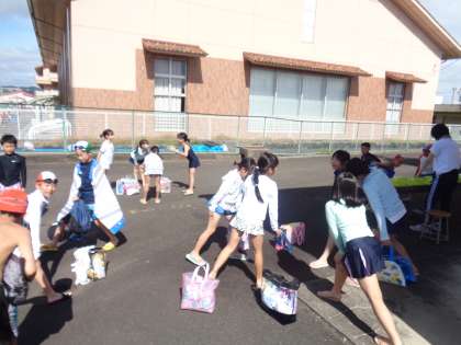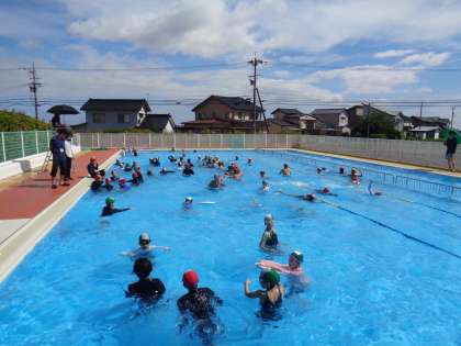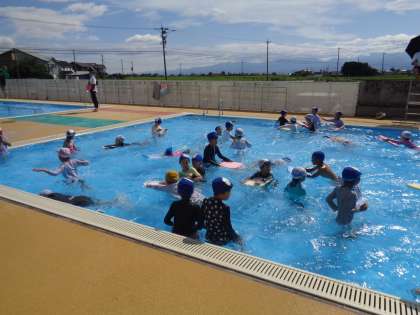 いろいろな学年の子供たちが楽しそうに泳いだり遊んだりしていました。