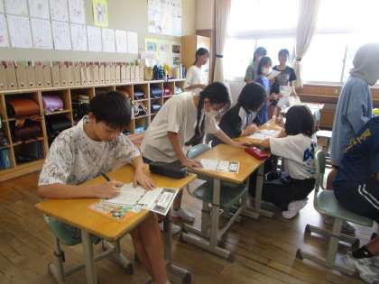 朝、登校するとすぐに始業式の準備を始めた6年生。友達と協力しながらてきぱきと動く姿に、頼もしさを感じました。始業式後は、友達の作品を見たり、夏休みの出来事を聴き合ったりしながら過ごしました。