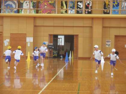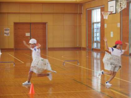 昨日・今日は手つなぎリレーと、新聞リレーを行いました。やったことのない走りに、自然と笑みがこぼれる子供たち。色団で応援し合ったり、こつを教え合ったりしながら、楽しく体を動かしていました。