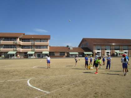 50m走のスタート練習と、ソフトボール投げの練習をしました。自分の目標を決め、新記録目指してがんばっています。