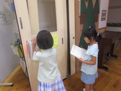 国語の時間に身の回りにあるカタカナを探しました。「見てみて!こんなところにもあるよ!」と隅々まで見つける姿が見られました。