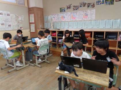 4年生 社会 公開日 2024/09/06 更新日 2024/09/06 4年生 社会では、富山県の伝統・文化について学習しています。おわら、曳山、五箇山の中から自分の気になるものを選んで調べています。「身近なおわらや曳山でも知らないことがたくさんあるな」と、初めて知ることに興味津々な子供たちでした。