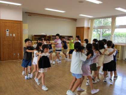 2年生 松組「えがおいっぱい2松パーティー パート2」その1 公開日 2024/09/17 更新日 2024/09/17 2年生 学きゅう会ぎで話し合って決めた「えがおいっぱい2松パーティー パート2」をしました。伝言ゲームとじゃんけんれっ車を楽しみました。