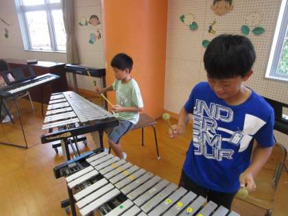 音楽の授業では、合奏に挑戦します。今日は楽器ごとに分かれてパート練習を行いました。