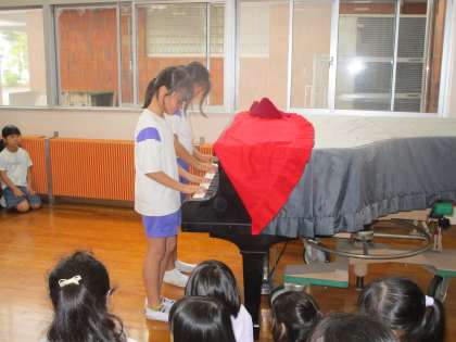 今日は、とくい芸ショーがありました。4年生はピアノを披露しました。杉の子の前で、練習の成果を発揮することができました。