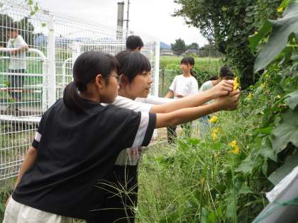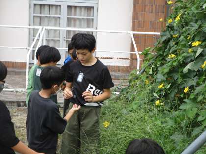 理科の学習では、顕微鏡の使い方を学習しました。今日はヘチマの花粉を採取して理科室で観察しました。