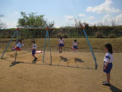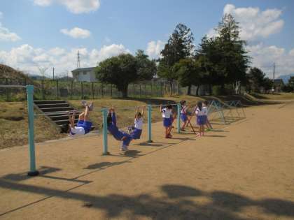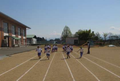 新しい体操服に着替えて体育の学習をしました。初めてのグラウンドにわくわくして目を輝かせていた子どもたち。50m走をしたり、遊具で遊んだりして思い切り体を動かしました。