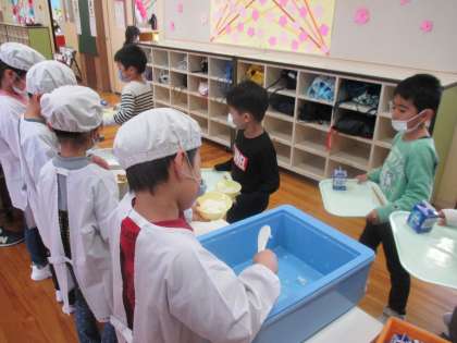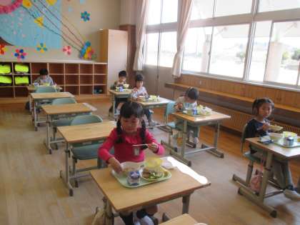 1年生 初めての給食 公開日 2020/04/09 更新日 2020/04/09 1年生 子どもたちが楽しみにしていた給食が始まりました。給食当番、台ふき、配膳のグループに分かれて、てきぱきと準備する子どもたち。おいしい給食をお腹いっぱい食べました。