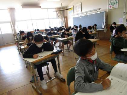 6年生 学力調査1日目 公開日 2020/04/09 更新日 2020/04/09 6年生 2時間目、3時間目は学力調査でした。 3時間目の理科が終わると 「疲れたあ。」 「国語は難しかったけど、理科は簡単だった!」 感想を言い合っていました。