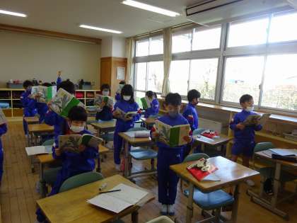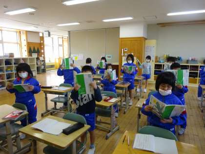 2年生 国語科「ふきのとう」 公開日 2020/04/09 更新日 2020/04/09 2年生 国語で物語文の学習をしています。感想を発表したり、登場人物の様子を思い浮かべながら、音読したりしました。