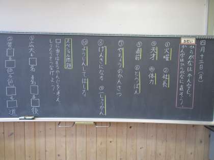 写真の課題を見て、パワーアップノートに取り組んでみましょう。今日は、国語のレベルアップ問題です。4年生は、3年生の問題にもチャレンジしてみましょう。