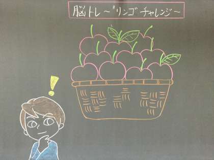 6年生 4/16 レベルアップクイズの答え 公開日 2020/04/16 更新日 2020/04/16 6年生 38人全員がリンゴを1こずつ持って行ったのに、かごの中にまだ1こ残っているのは、「最後の人が、リンゴが入ったかごごと持って行ったから」です。イメージできたかな?