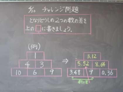 5年生 4/30(木) レベルアップ問題13の答え 公開日 2020/04/30 更新日 2020/04/30 5年生 今日の問題の答えです。小数点に気を付けて解けたかな? 自分で、□に入れる数字をかえてみたり、□の場所をかえたりしながら、PUノートに問題を作ってみましょう。