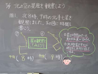 5年生 5/7(木) レベルアップ問題15 の答え 公開日 2020/05/07 更新日 2020/05/07 5年生 星の問題、思い出しましたか。 これから、天気のよい日が続きます。おうちの方と一緒に星の観察もしてみてね。北斗七星や北極星を探してみましょう。 でも、夜は冷えますから、風邪引かないようにね!!