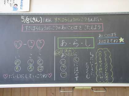 1・2年生 5/8(金) レベルアップもんだい14 こたえ 公開日 2020/05/08 更新日 2020/05/08 学校 あいことばや やさいのなまえは わかったかな??つぎのもんだいも おたのしみに!