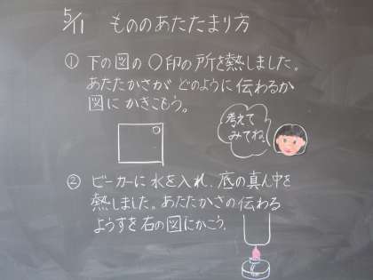 きょうは、理科の問題です。「もののあたたまりかた」だよ。考えてみてね!