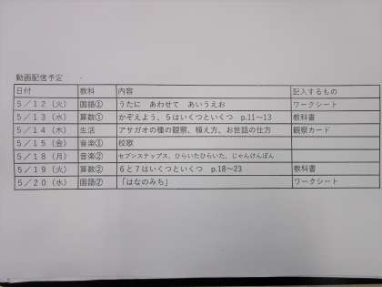 今後の杉の子スクールの配信予定をご確認ください。配信内容によって、ワークシートや教科書、ノートに記入していただく予定です。