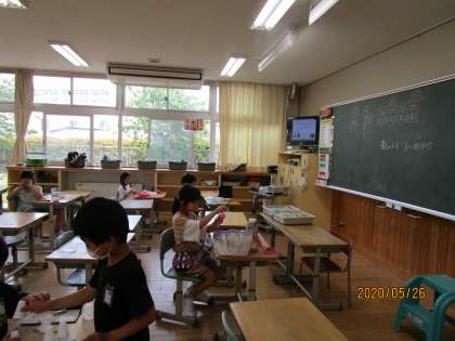 2年生のマイタイム、静かにぬり絵をしている子がたくさんいました。教室の背面掲示にぬり絵の掲示コーナーがあり、お互いに刺激になっているようでした。