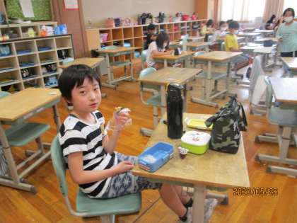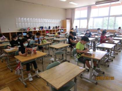 4年生のお昼休み「マイタイム」 公開日 2020/05/26 更新日 2020/05/26 4年生 お弁当をゆっくりペースで味わい、にっこりしている子供、静かに読書をしている子供、一人一人が自分の時間「マイタイム」を楽しんでいました。