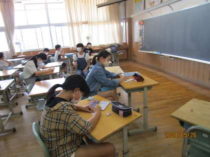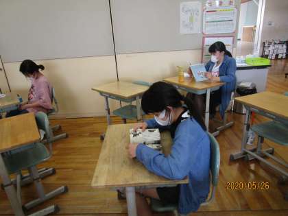 6年生教室は、全体的に落ち着いていました。カードを書く、読書に浸る。一人の時間を楽しんでいました。