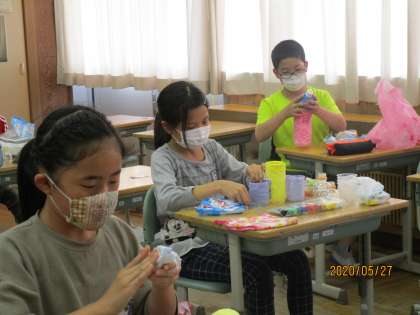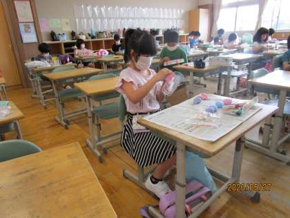 4年生は夢中で工作 公開日 2020/05/27 更新日 2020/05/27 学校 4年生は、黙々と作品づくりに精出していました。HPでお知らせしたとおり、準備物もバッチリ。夢中になるときは、とても静かな教室になりますね。