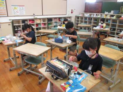 4年生 今日の様子〜Bチーム〜 公開日 2020/05/27 更新日 2020/05/27 4年生 休業中に家庭で進めた学習の確認をしたり、図工で小物入れ作りを行ったり・・・少ない人数ですが、頑張っています。 休み時間や空いた時間には、お楽しみプリントを活用して静かにマイタイムを過ごしていました。