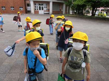 今日と明日は、2年生さんと一緒になかよし下校です。暑いですが、元気に安全に気を付けて帰ります。
