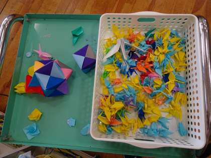 5年生 マイタイムの過ごし方 公開日 2020/06/04 更新日 2020/06/04 5年生 竹組では、最近マイタイムに折り紙を折ることがはやっています! 今日で折り鶴が100羽になっていました。 この後は、どうなっていくのでしょうか。楽しみです。