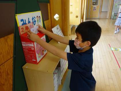2年生 生活科・ほかほか葉書 公開日 2020/06/05 更新日 2020/06/05 2年生 学校の畑にキュウリが実っているのに気付きました。「お家でもキュウリができてるよ!」と話していました。 お世話をしているオタマジャクシの観察をしました。虫眼鏡や観察キットを用いてじっくり観察することで、新しい発見がたくさんあったようです! 席替えをしてお隣の席になったお友達に「ほかほか葉書」を送りました。「ポストに葉書を入れるのも、お手紙が届くのも楽しみだな!」