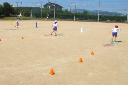 今日も暑かったですが、子供たちは元気いっぱい。チーム対抗のリレーでは、ジグザグ走りにも挑戦しました。どの団も、1位を目指して一生懸命取り組んでいました。