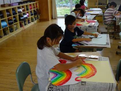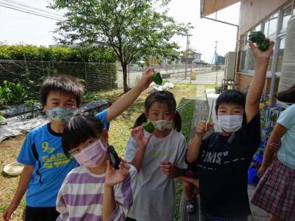 2年生 生活・図工 公開日 2020/06/11 更新日 2020/06/11 2年生 キュウリに引き続き、学校の畑でピーマンを収穫しました!収穫したばかりのピーマンは、甘く、子どもたちは驚いていました! 図工では、「ひみつのたまご」の学習をしました。たまごから生まれるお話にドキドキわくわくしながら、取組ました。