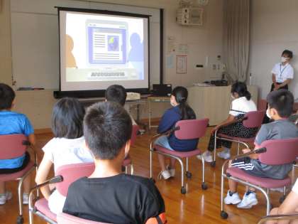 講師の先生から、SNSは便利で楽しいけど、危険な面もあることを具体的に教えてもらいました。個人情報の流失などの話になると、子供たちから、「え〜」という驚きの声があがりました。