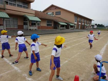 体育でジェスチャーゲームとリレーをしました。どの活動も一生懸命に取り組みました!