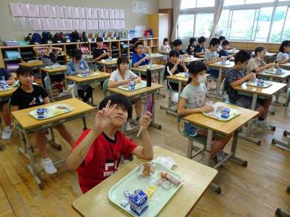 今日が最後の簡易給食でした。 来週からの給食も楽しみにしている子供たちです。