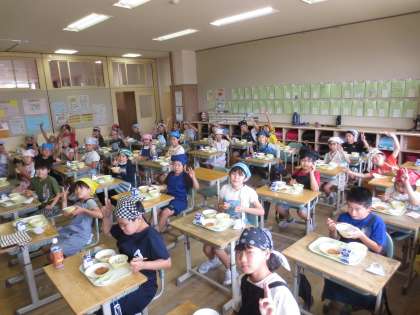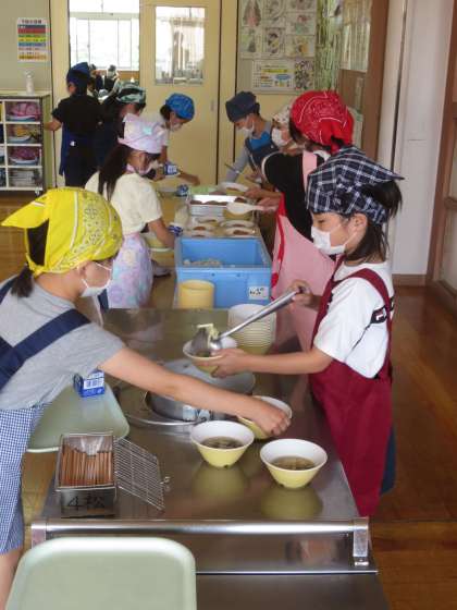 給食は、久々に温かい汁物やおかずが出ました。おいしい給食に夢中になって、食べていました。幸せなひとときです。