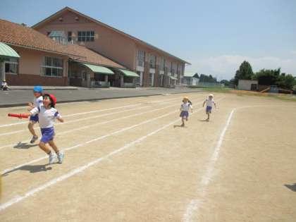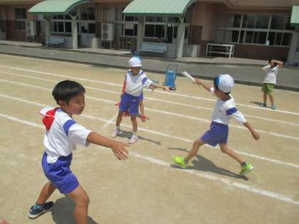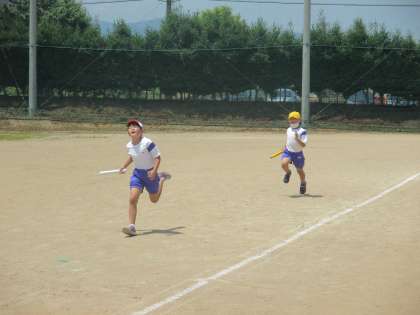 体育でリレーをしました。子どもたちは、仲間が一生懸命に走る姿を見て、大きな声で応援していました!