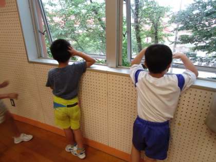 「こんなおと みつけたよ」松組 公開日 2020/06/26 更新日 2020/06/26 1年生 音楽室で静かに耳を澄ませていると、聞こえてくる、いろいろな音を、声で表す活動をしました。同じ雨の音でも「ぽつぽつ」「ざあざあ」など、いろいろな表現がある楽しさを感じていました。