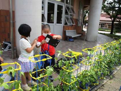 「こんなおと みつけたよ その2」 松組 公開日 2020/06/29 更新日 2020/06/29 1年生 とてもよい天気だったので、玄関を出て音を探しに行きました。風の強弱によって変化する揺れる葉っぱの音に気が付き、味わっていました。 また、校内で行っている「杉の子フォトコンテスト」に向けて、初めてハイブリッドパソコンを使って、自分のお気に入りの場所をカメラで撮影しました。使い方にもすぐに慣れ、素敵な写真をたくさんカメラに収めていました。