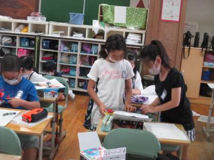 じっくり一人で課題と向き合う子、友達と相談しながら進める子、自分に合った方法で課題に取り組んでいます。