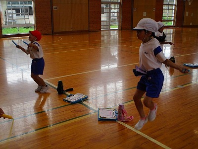 1年生 なわとびの練習 公開日 2020/07/03 更新日 2020/07/03 1年生 なわとびカードを見ながら、自分の目当てを決めて練習に取り組んでいます。「あやとび」や「交差とび」ができるようになった子供たちも増えました。