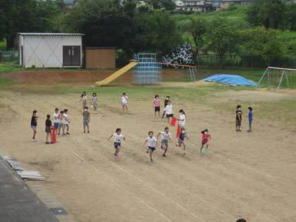 朝のいきいきタイムの様子です。50m走や走り幅跳びの練習をがんばっています。