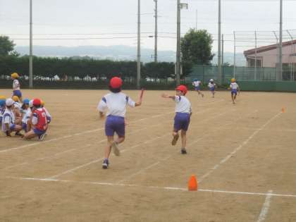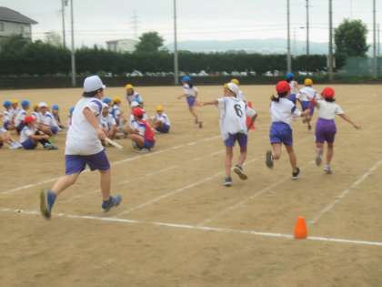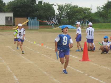 団別リレーを行いました。各学級で練習していたバトンパスの練習の成果を出しました。