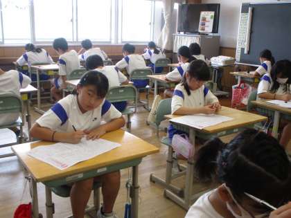算数や国語、社会など、折々にテストを行っています。集中して取り組んでいました。