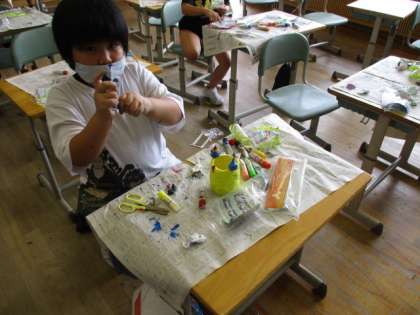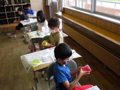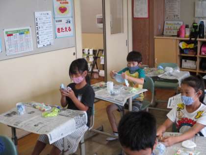 3年生 あきようきでへんしん!(竹) 公開日 2020/07/10 更新日 2020/07/10 3年生 図工の学習では粘土を使って鉛筆立てを作りました。粘土に絵の具を混ぜ、きれいな色を作って、芯材の周りを固めていきました。それぞれ飾りにも工夫を凝らし、楽しい作品ができました。