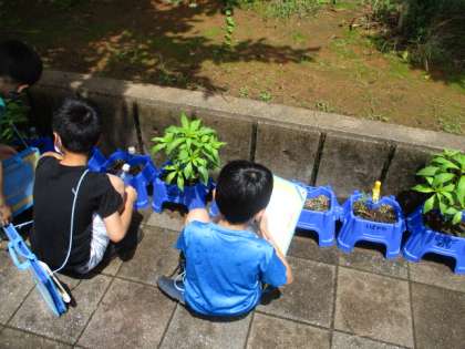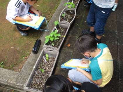 3年生 育てた植物を観察したよ 公開日 2020/07/16 更新日 2020/07/16 3年生 理科の学習では、育てたホウセンカ、ヒマワリ、オクラ、ピーマンを観察しました。最近は雨続きでしっかり見られなかったので、久しぶりに見た植物たちの成長ぶりに、子どもたちはびっくりしていました。
