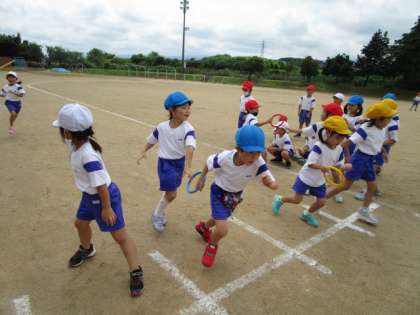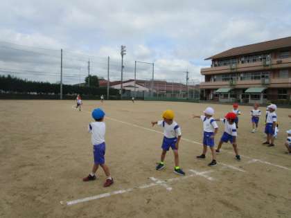 今日は、久しぶりに外で体育ができました。各色団で走る順番を話し合い、バトンを渡す練習を行いました。体育館よりも長い距離でしたが、バトンミスをしても転んでも、最後までバトンをつないで一生懸命走っていました。