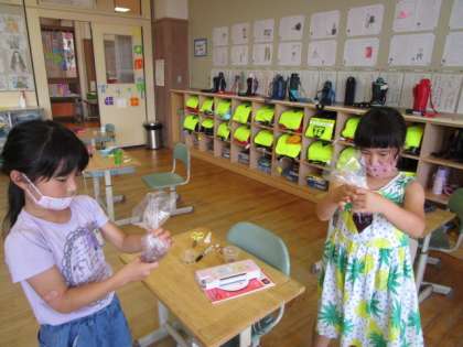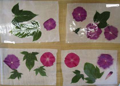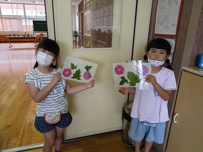 1年生 生活科の様子 公開日 2020/07/21 更新日 2020/07/21 1年生 きれいな花や葉を残そうと、花が咲いた子供から押し花を作っています。 また、しぼんだ花で色水を作り、折り染めにも挑戦したいと思います。